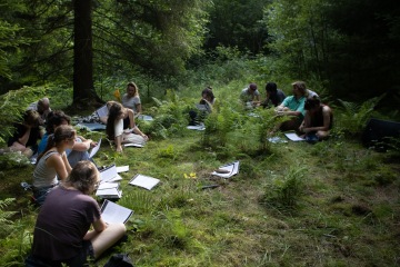 Woods is a vibrant community of people from the fields of art, ecology, permaculture, and education, which has been creating the Are association (are-events.org) since 2019. On their own 2.8-hectare forest and meadow land, they combine landscape care with contemporary art and environmental theory.