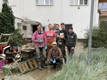 V sobotu ráno jsme byli vysláni na místo první pomoci – do zatopených sklepů činžovního domu na hlavním náměstí. Po celý den jsme vynášeli věci ze sklepů na ulici, kde se hromadil kontaminovaný materiál. Voda ve sklepích zůstávala, a protože čerpadla nedokázala vše odsát, museli jsme zbylou vodu ručně vynášet v kbelících. Podařilo se nám sklepy úplně zbavit vody a dokončit práci, kterou jsme si dali za cíl. Přestože město zatím nedokázalo zajistit odvoz odpadů, Armáda rychle zareagovala. Vojáci veškerý odpad naložili a odvezli. Naši dobrovolníci mezitím ještě zachránili různé nářadí – očistili ho a vydezinfikovali, aby mohlo být znovu použito.