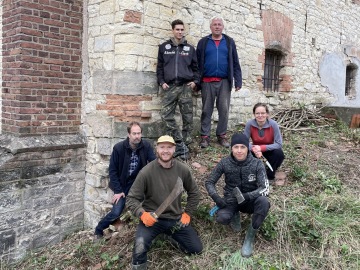 V sobotu jsme se pustili do práce u místní sýpky, kde jsme odstranili náletové dřeviny a připravili čtrnáct oken na zimu. Dřevěné rámy jsme obalili fólií a umístili do očištěných okenních otvorů. Odpoledne jsme rozdělili síly – část týmu pracovala na stavbě terasy pro budoucí domeček, zatímco zbytek pokračoval v odstraňování dřevin na místě plánovaného tábořiště.
