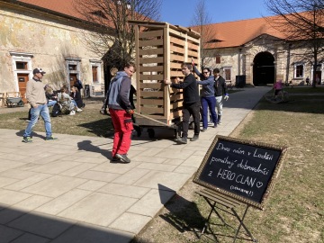 Sobotní ráno jsme odstartovali s velikou vervou – pustili jsme se do vyklízení prostor kolem lodžie, kde se brzy bude stavět dál. Kromě toho jsme odstraňovali starý, rozpadlý plot, čistili a natírali lešení, které poslouží jako nové regály do dílny. Práce bylo opravdu dost, ale stihli jsme i něco pro tělo i duši – ranní jógu pod oblouky lodžie a zábavný výklad o historii místa.